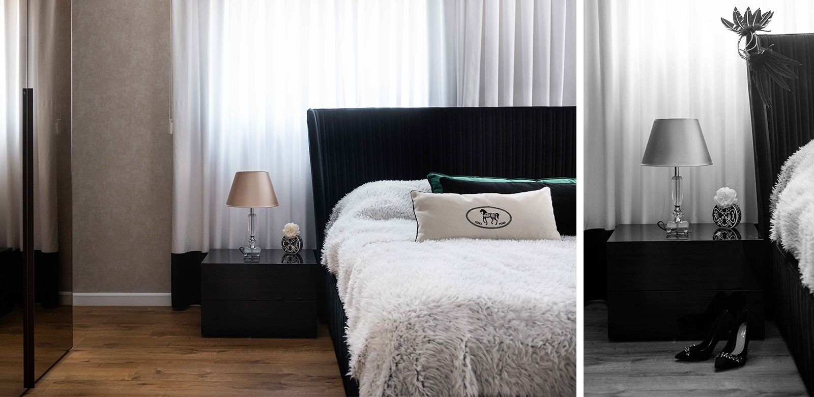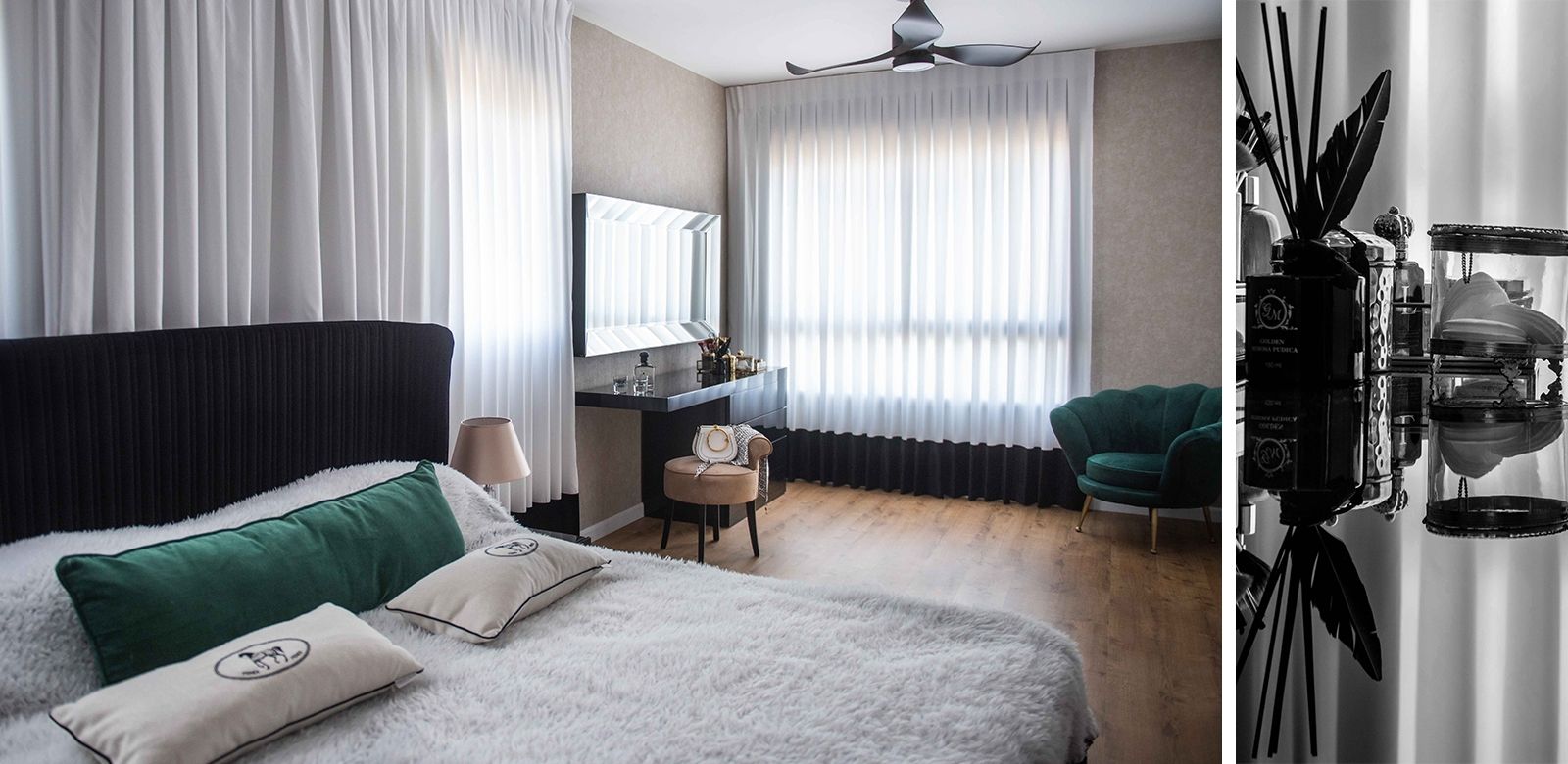 הצבעים המנחים בעיצוב הדירה הינם שחור, לבן, אפור וכמובן עץ (פרקט אלון) להוסיף חמימות ונעימות בחלל הבית.
