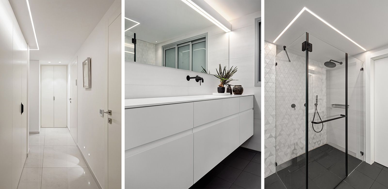 תהליך העיצוב כלל שינוי מבני, בחירת חומרי גמר לא סטנדרטיים וכמובן התייחסות לתאורה ולגופי תאורה המשתלבים בהרמוניה עם שאר פריטי הנגרות והריהוט בדירה.