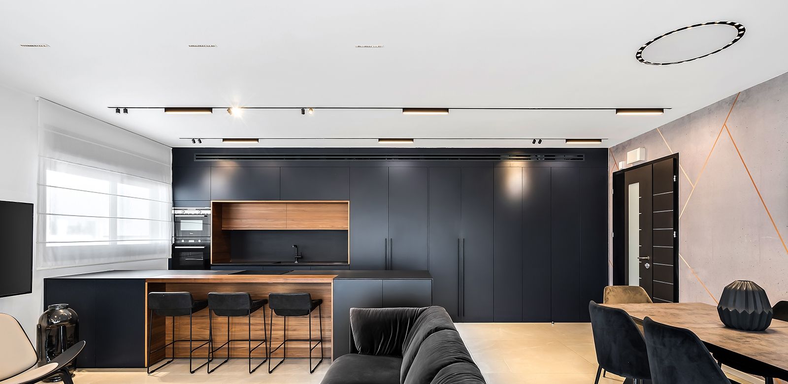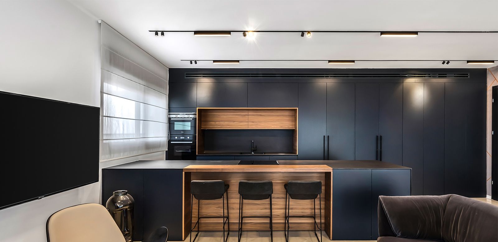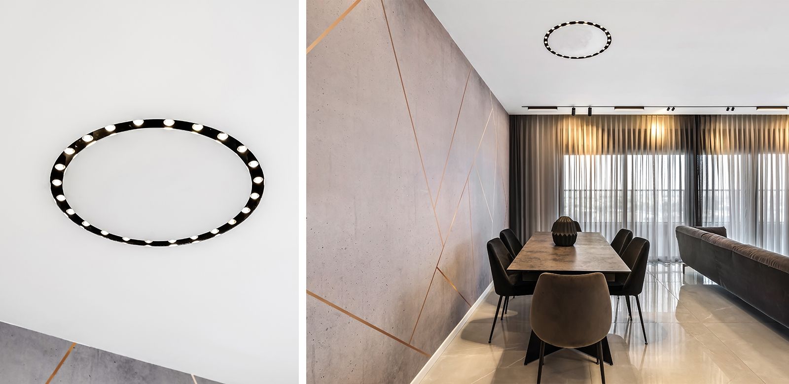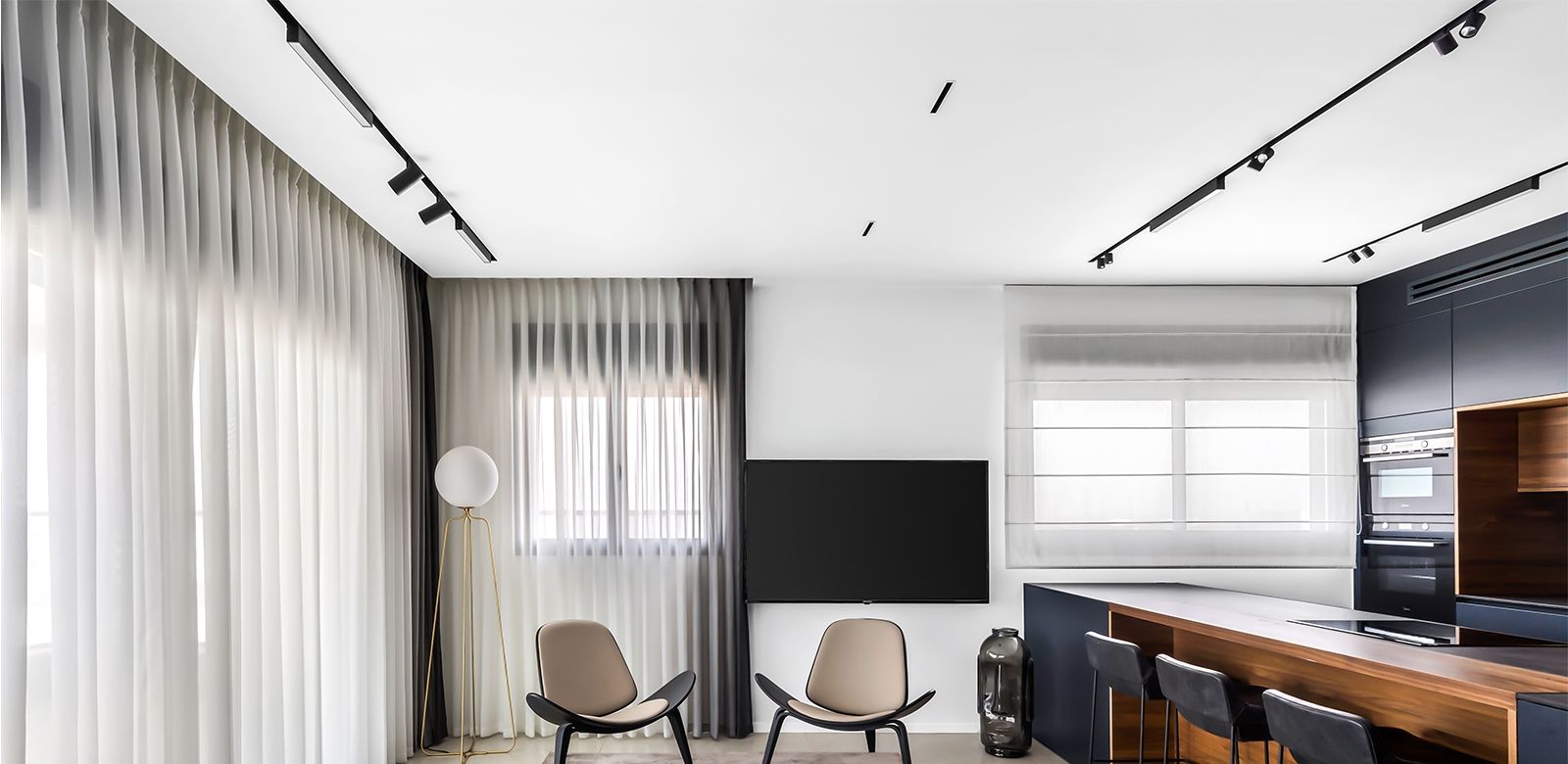 בחרתי בגופי תאורה בקווים נקיים שידגישו את הקו העיצובי הנקי והמעודכן וירגישו את האלמנטים העיצובים החשובים בדירה.