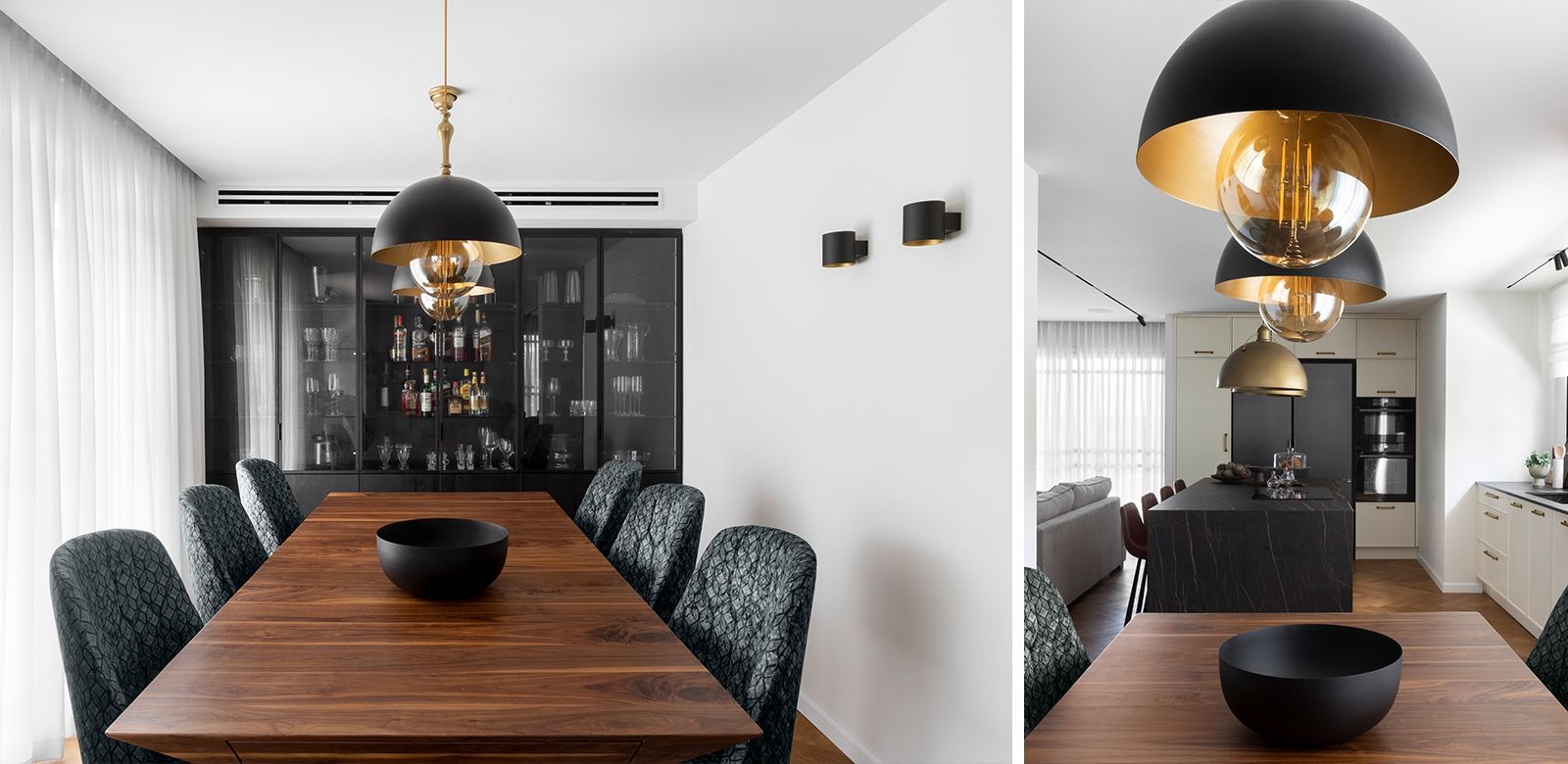 המבנה הלא סטנדרטי של הבית דרש תכנון מוקפד ומדויק לגופי תאורה שקועים בתקרת גבס לא גבוהה במיוחד.