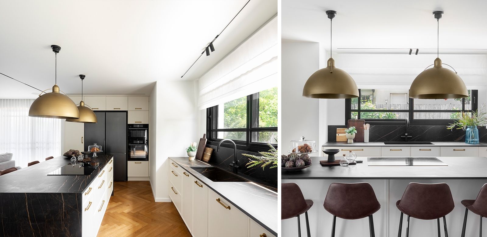 השינוי העיקרי והמתבקש הוא העברת המטבח מחלל תחום לחלל המגורים הפתוח ,לצד פינת האוכל ואזור האירוח.