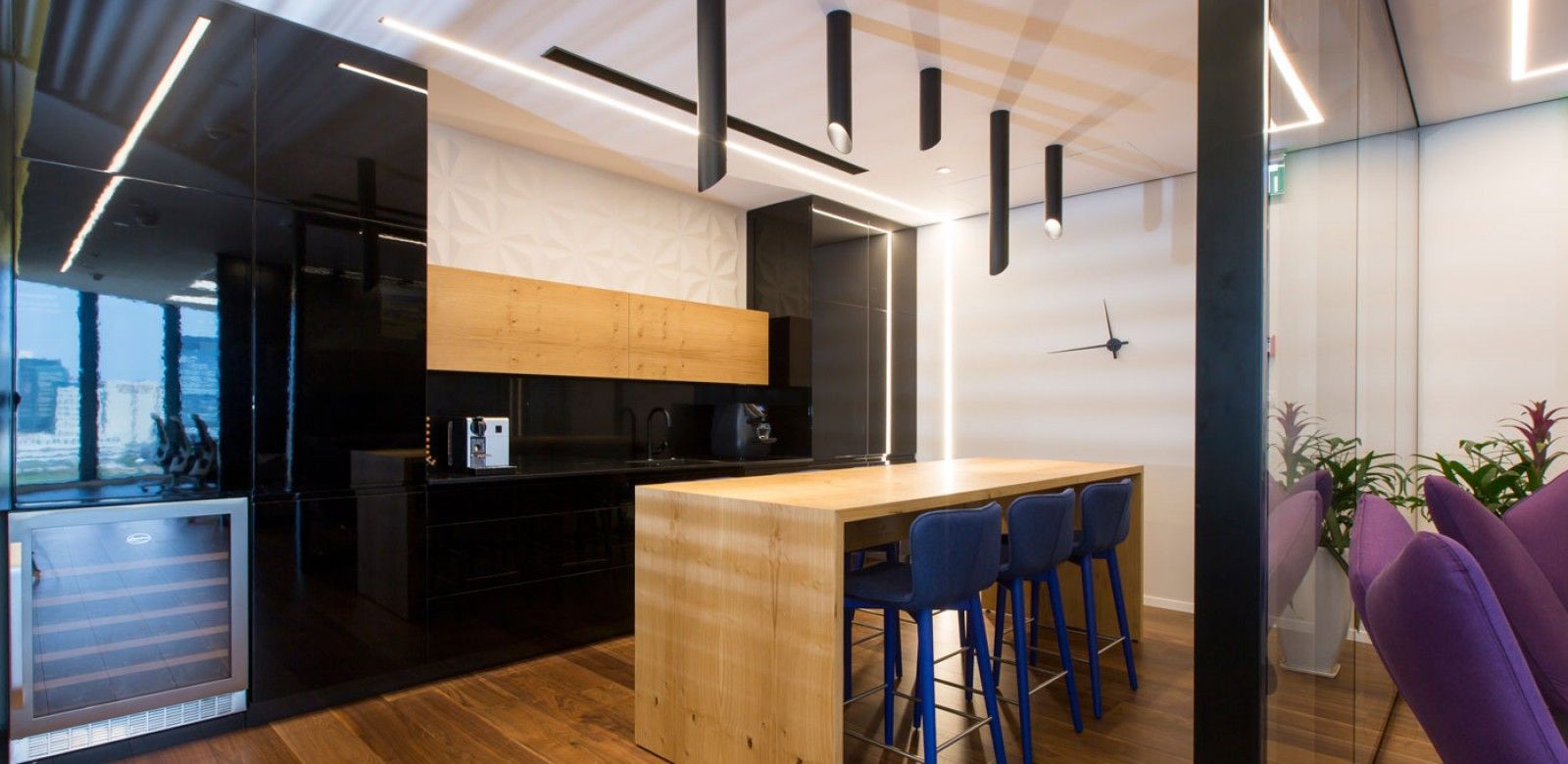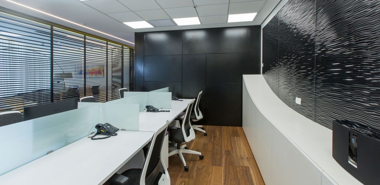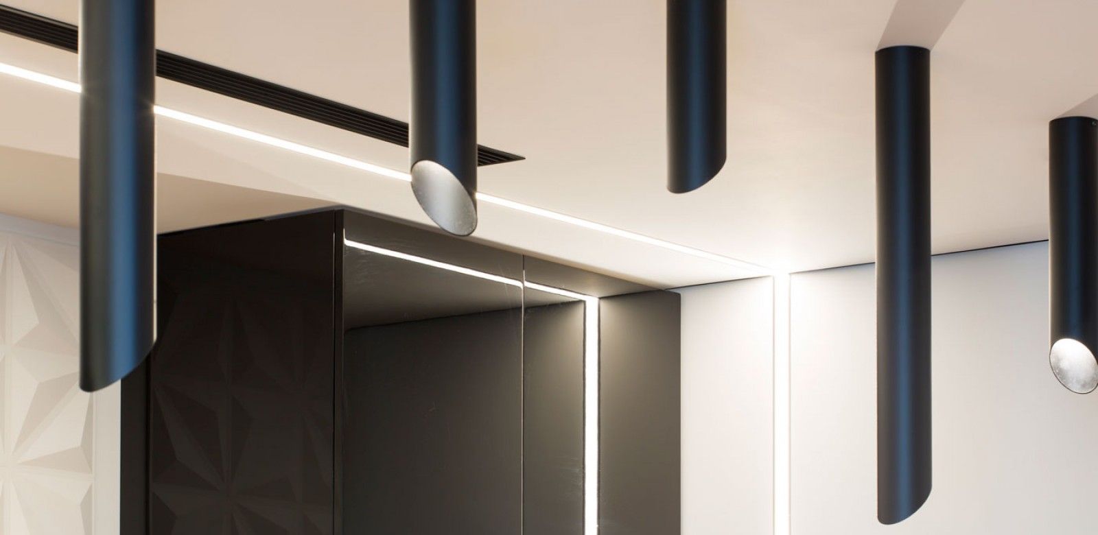 בפרויקט זה נעשה שימוש בשקועים טכניים חכמים המבצעים שטיפת קיר נכונה- Lazer Blade wall washer של חב' IGUZZINI.