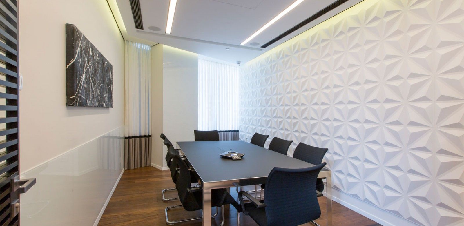 בחדר הישיבות ניתן לשלוט בעוצמת האור ולהתאימה לאווירה הדרושה.