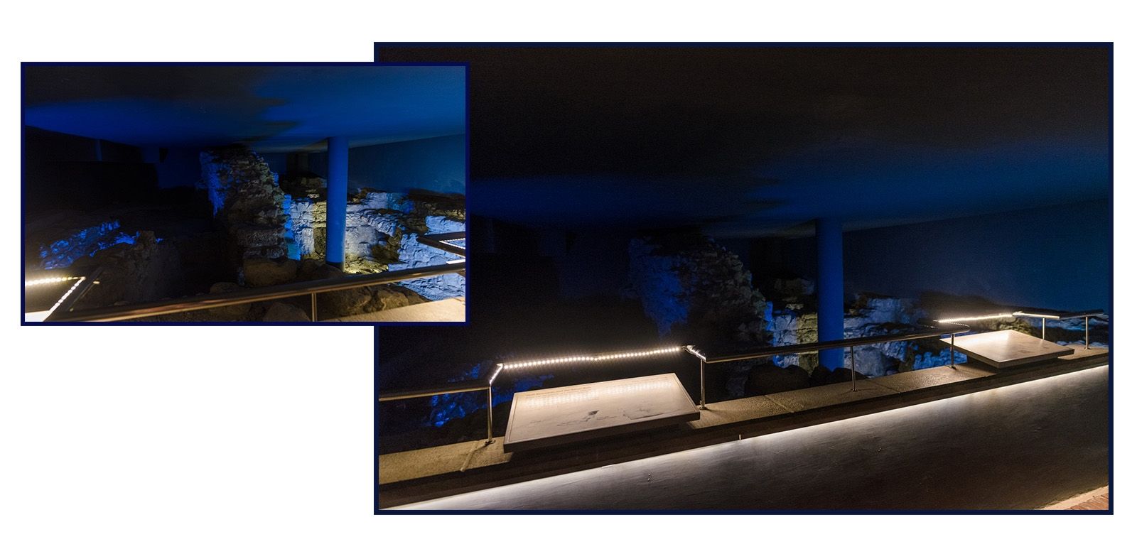 גופי התאורה הורכבו על גגות הבניינים הסמוכים המרוחקים במרחק של עשרות מטרים מהכיפה.