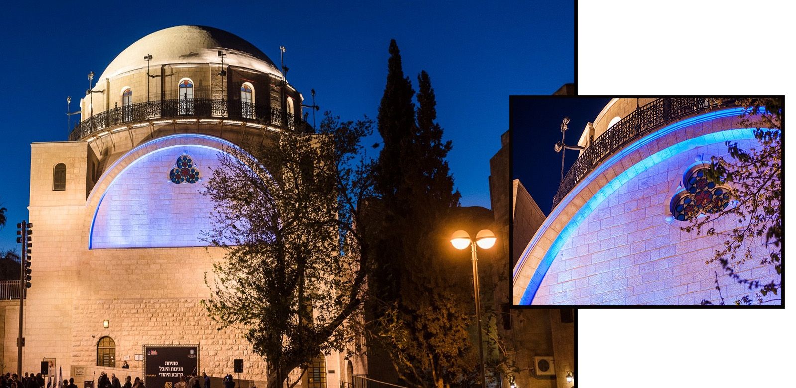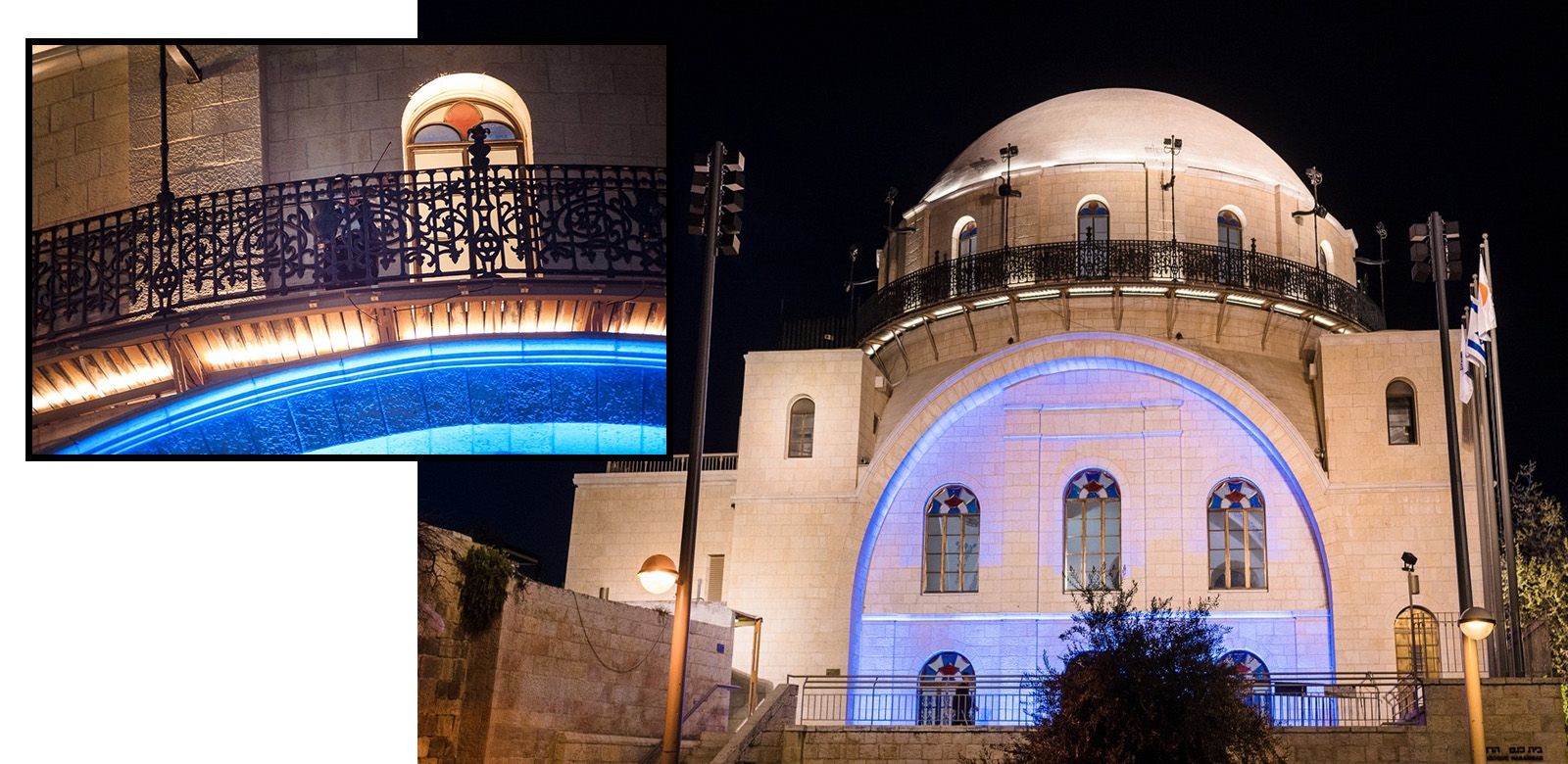 בפרויקט ניצבו בפני מעצב התאורה מספר אתגרים לא פשוטים, העיקרי שבהם הוא אופן הארת כיפת בית הכנסת.
