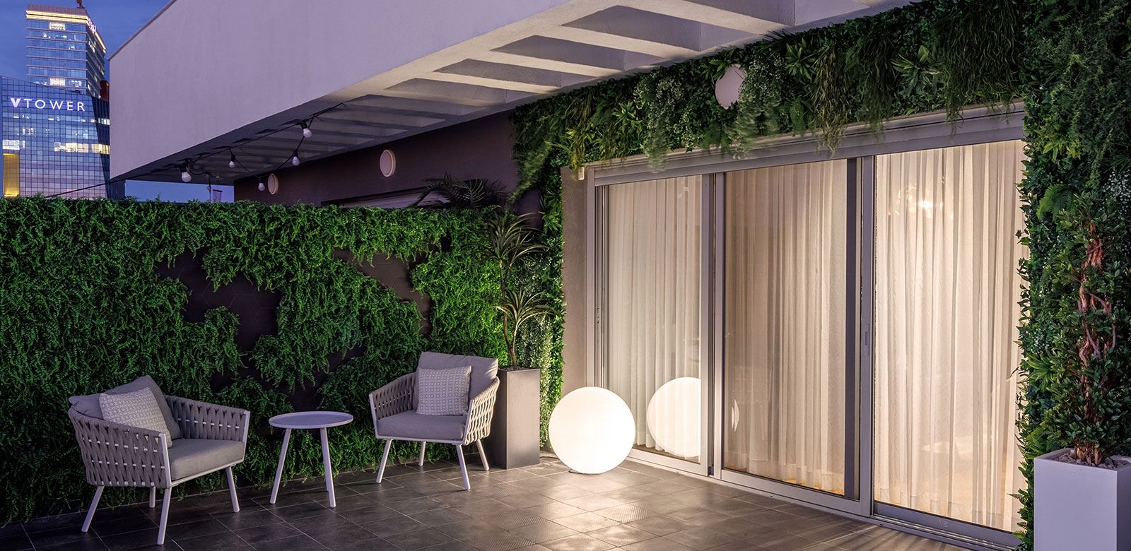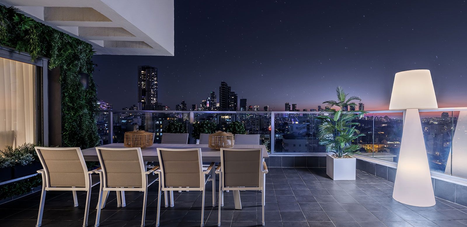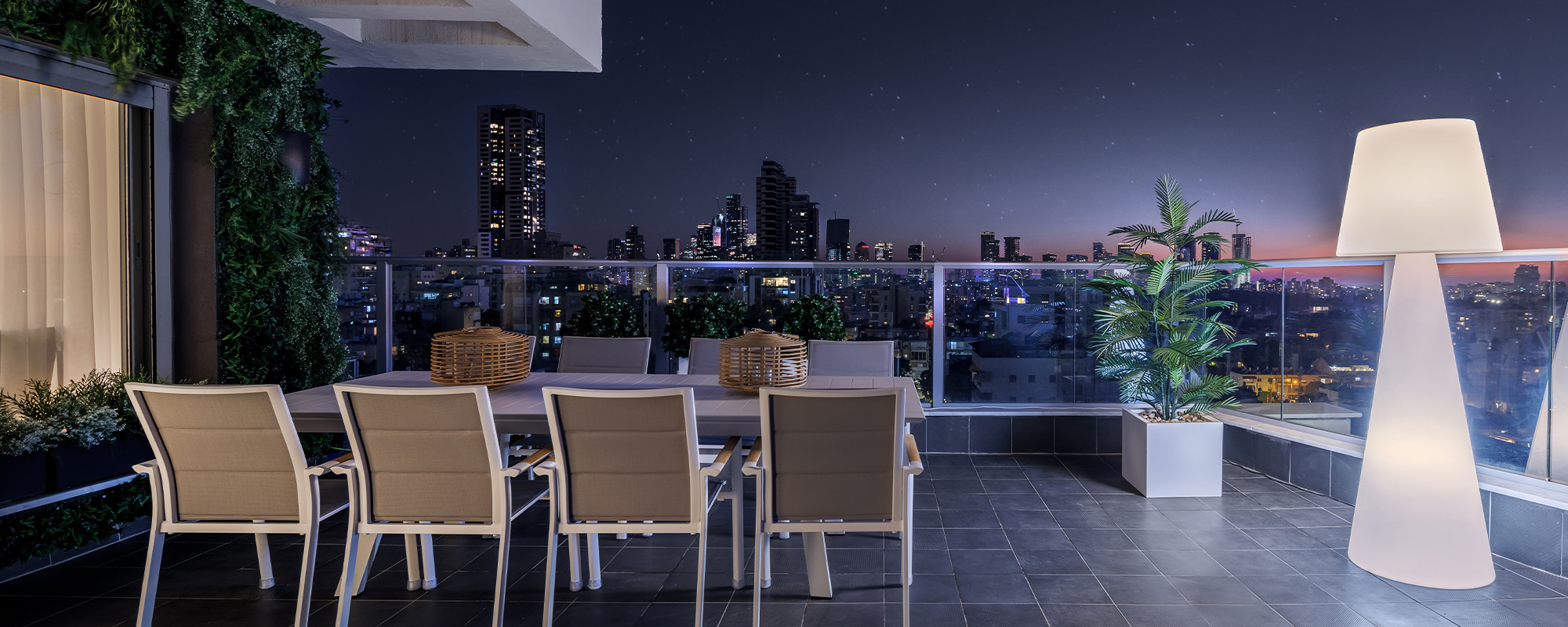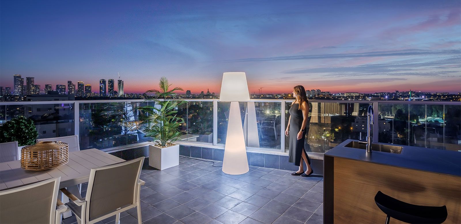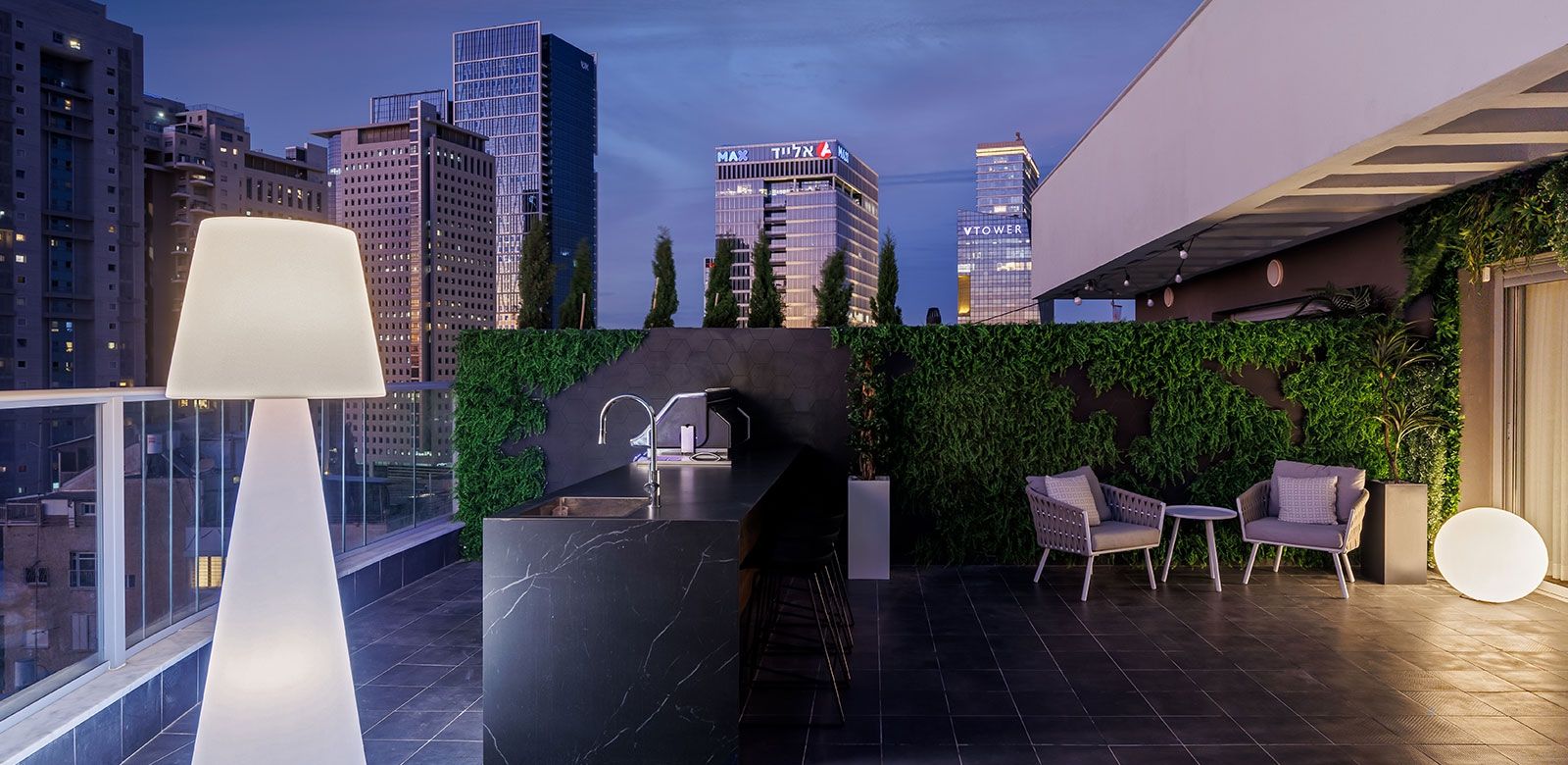 הוספנו על הגג גופים מוארים של חב' SLIDE להשלמת האוירה הקסומה אל מול הנוף הקסום שנפרש לנגד עיננו.