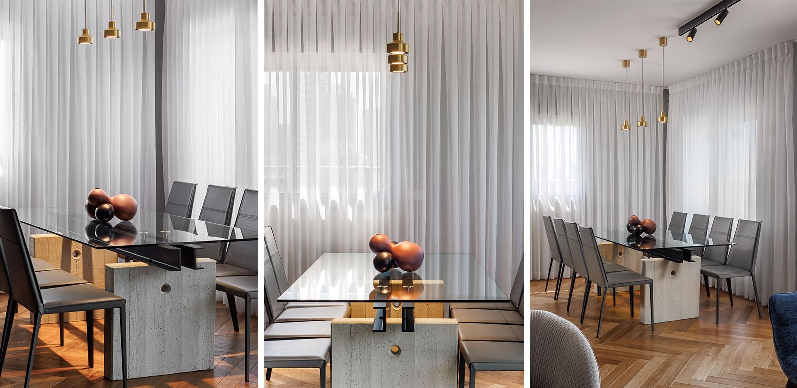בחרנו בגופים פיסוליים לסלון של חברת ZAVA גופי תאורה דקורטיביים עם נוכחות מעל האי במטבח ומעל פינת האוכל גם הם של חב' ZAVA